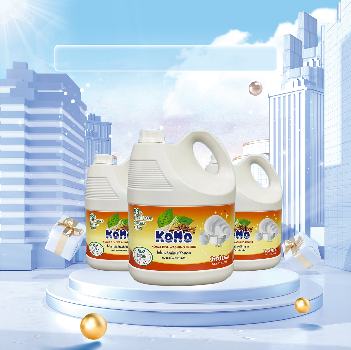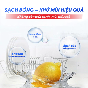 - Nước rửa chén KOMO được làm từ 97% thực vật, an toàn với người sử dụng bao gồm cả những người có làn da nhạy cảm; nhờ công nghệ hiện đại nước rửa chén KOMO giúp đánh bay dầu mỡ, cạn bám và tạo độ sáng bóng cho xong nồi, chén đũa đồng thời khử mùi đồ ăn nhờ hương thơm dịu nhẹ của chanh tươi, cam, quế, xả hoàn toàn từ thiên nhiên.